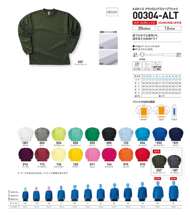 ロングドライTシャツ 140cm〜 ユニセックスサイズです。